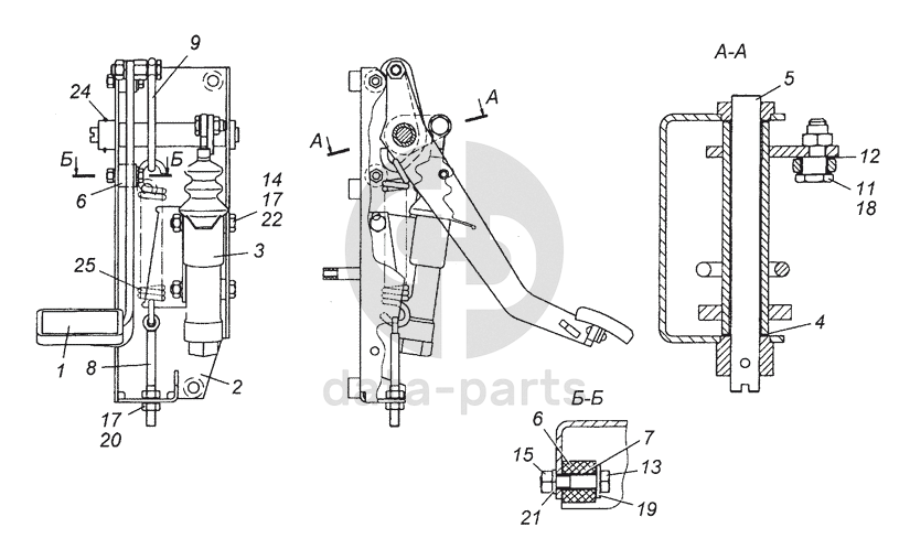 6520-1602008 Педаль сцепления с кронштейном и главным цилиндром в сборе