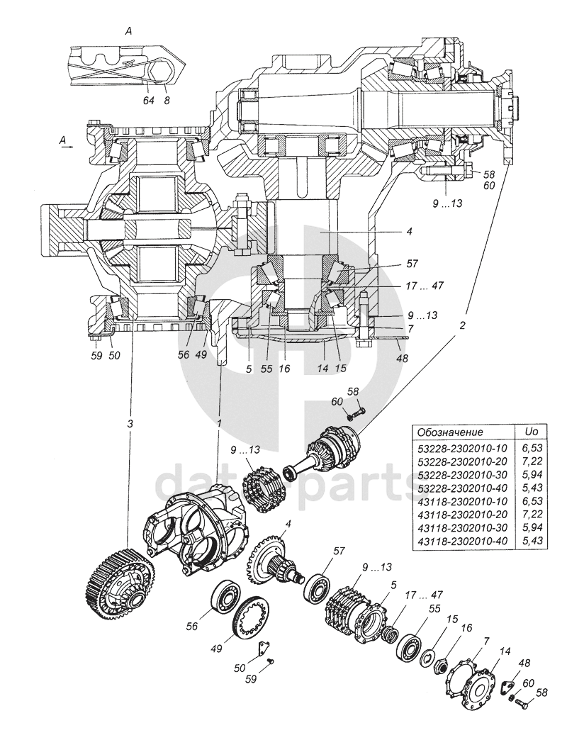 Редуктор переднего моста КАМАЗ 49/13 (6.53)