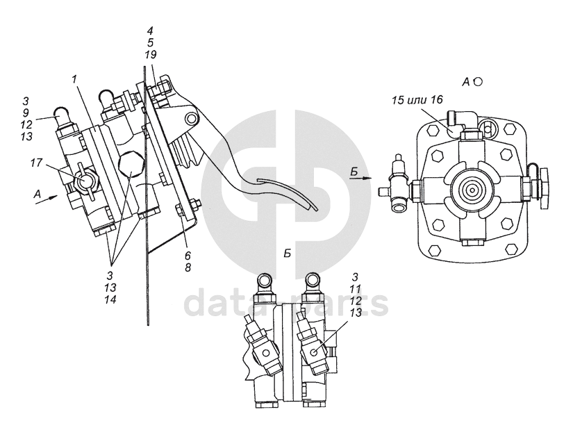 Кран КАМАЗ-ЕВРО тормозной 2-х секционный в сборе с педалью