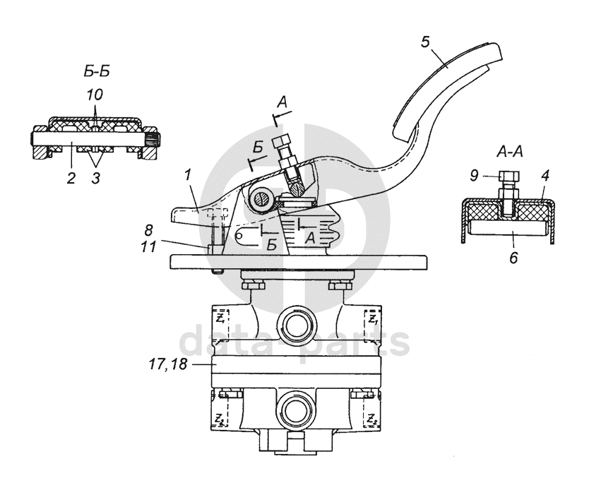 Кран КАМАЗ-ЕВРО тормозной 2-х секционный в сборе с педалью