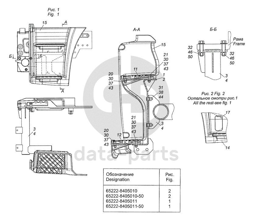 65222-8405011 Установка подножек левая