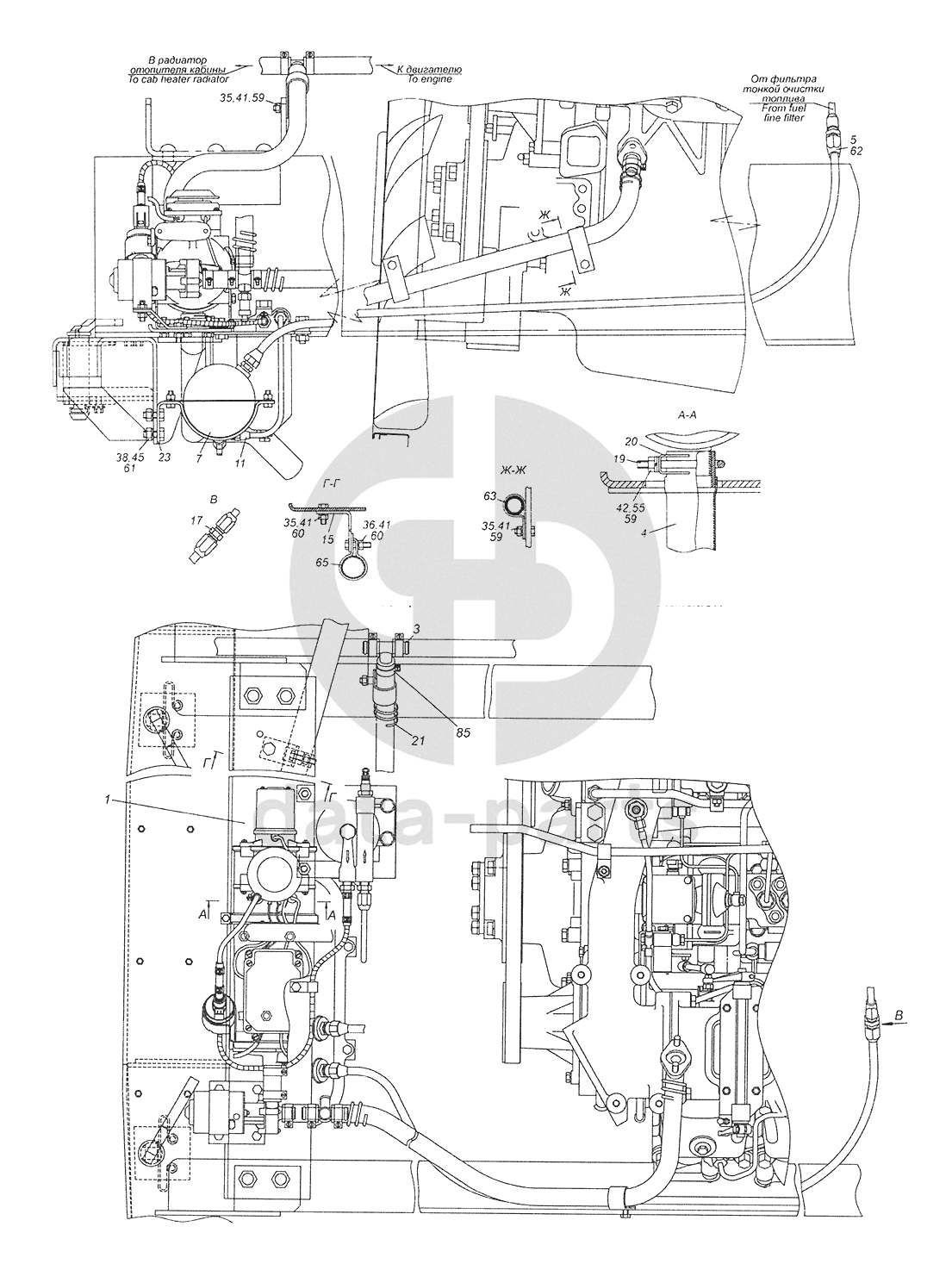 Установка подогревателя, электродвигателя с насосом и топливного фильтра