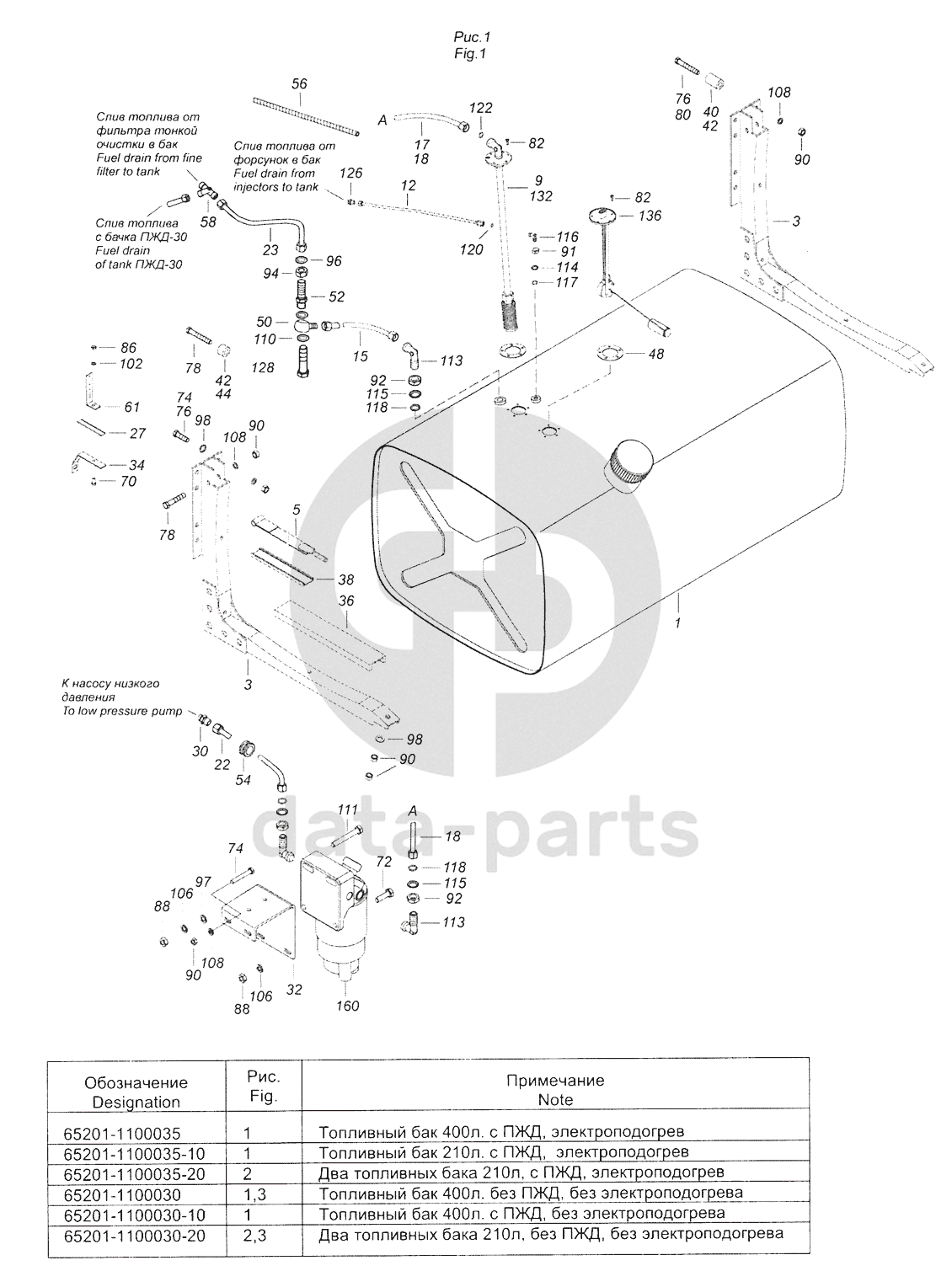 65201-1100035 Установка топливного бака, ФГОТ и топливопроводов