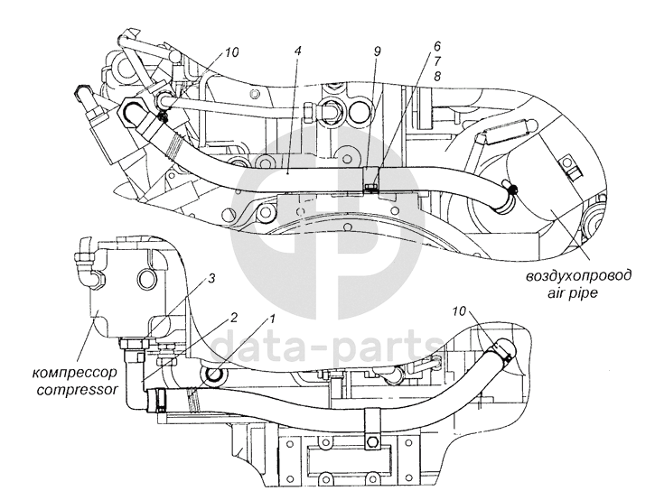5308-3509000 Установка подвода воздуха к компрессору тормозов