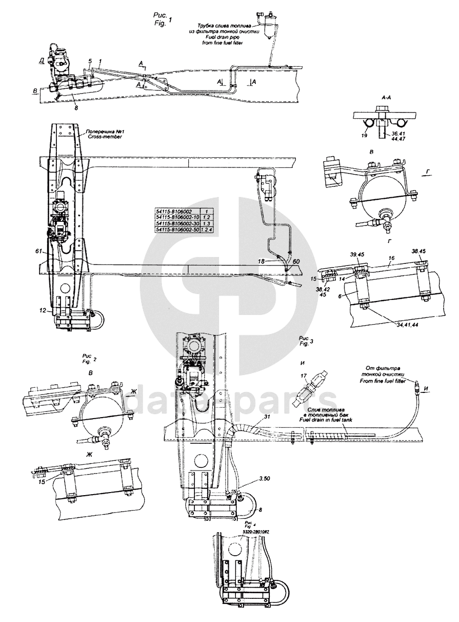 54115-8106002 Установка топливного бачка и топливопроводов подогревателя 14ТС-01