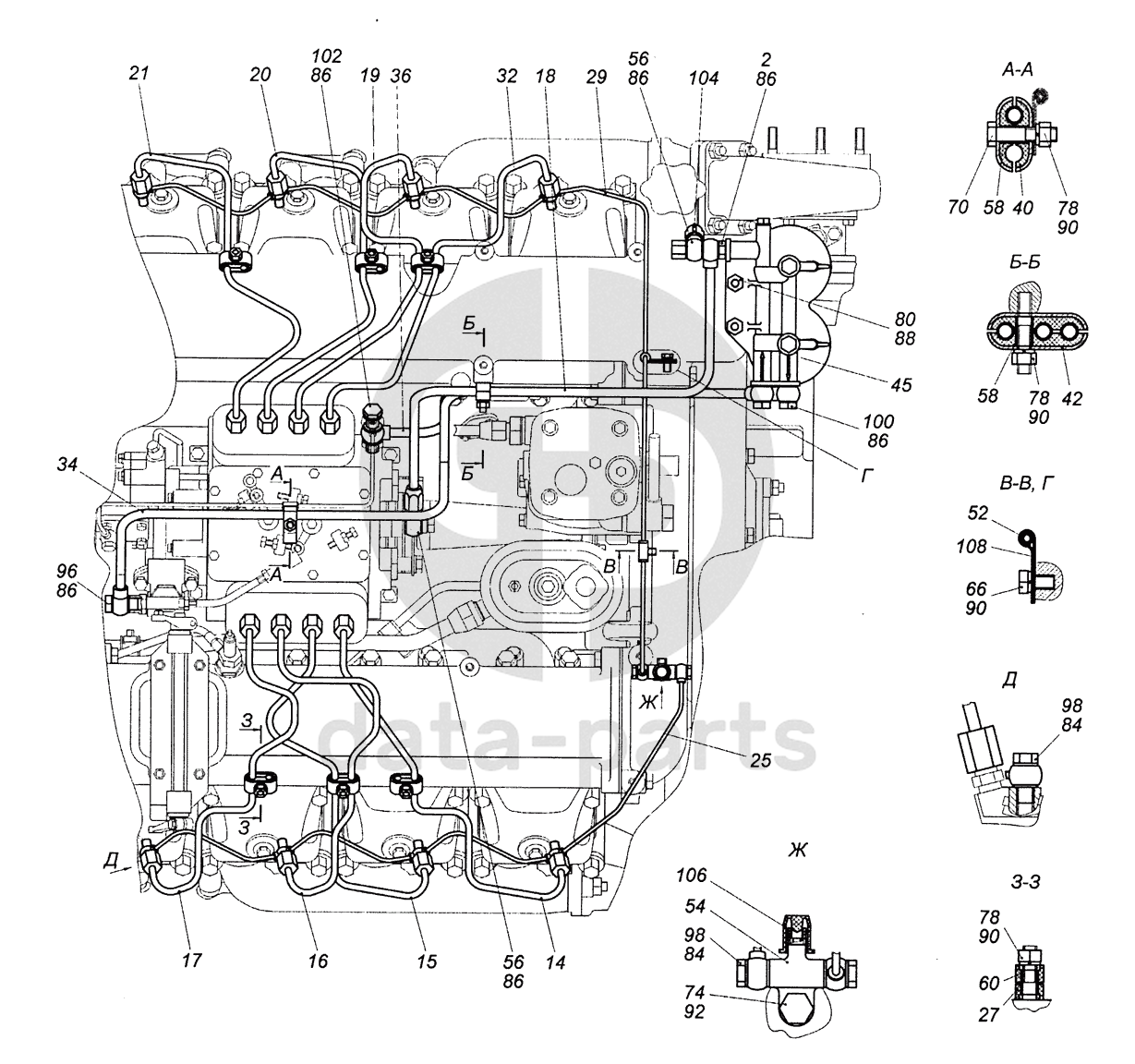 Трубка топливная КАМАЗ-ЕВРО дренажная форсунок правая