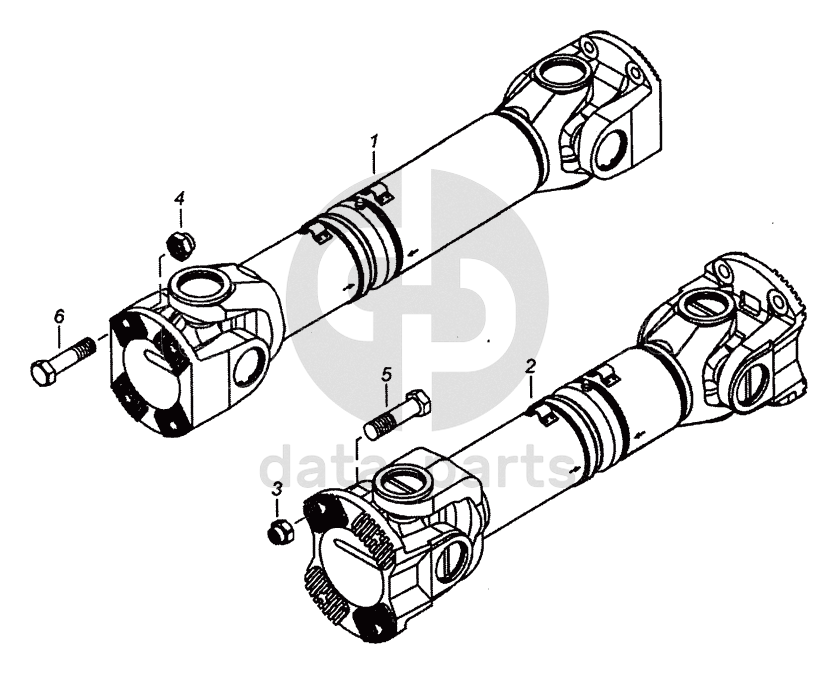 Вал карданный КАМАЗ среднего моста (4 отверстия торцевые шлицы) L=629мм