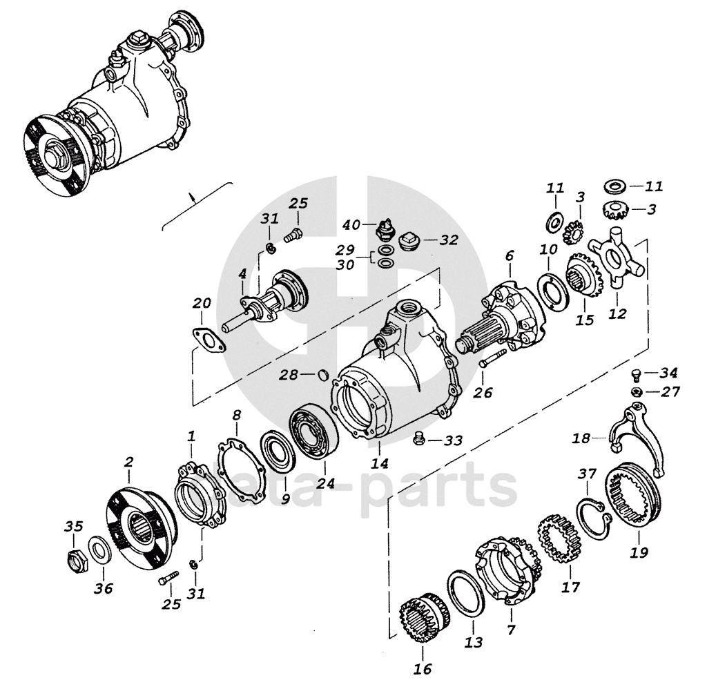 Муфта шестерни привода среднего моста межосевого дифференциала