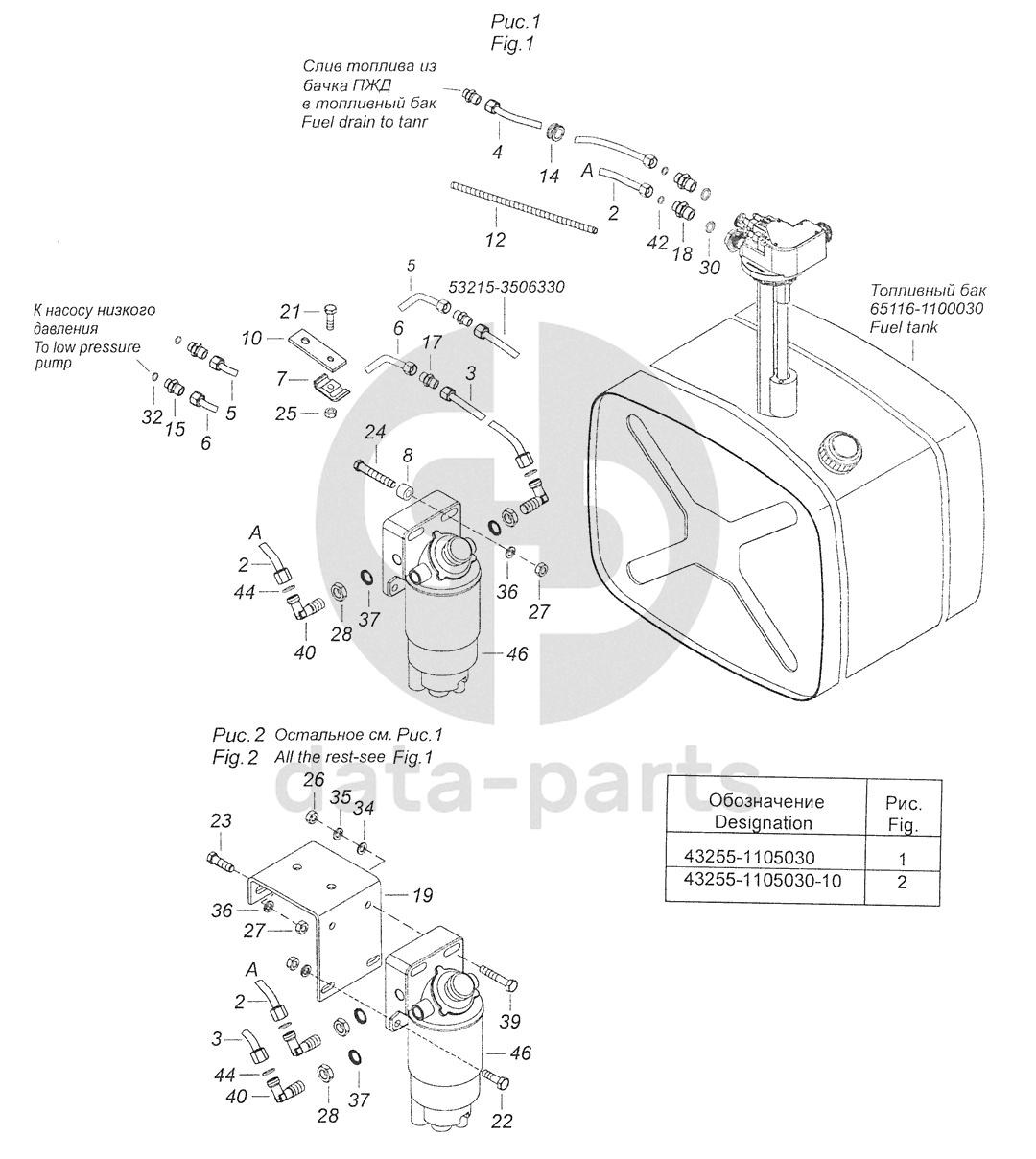 43255-1105030 Установка фильтра грубой очистки топлива и топливопроводов