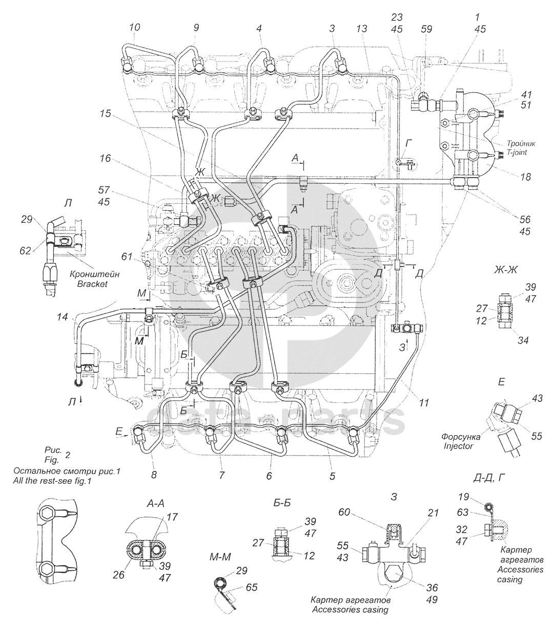 Трубка топливная КАМАЗ-ЕВРО дренажная форсунок правая