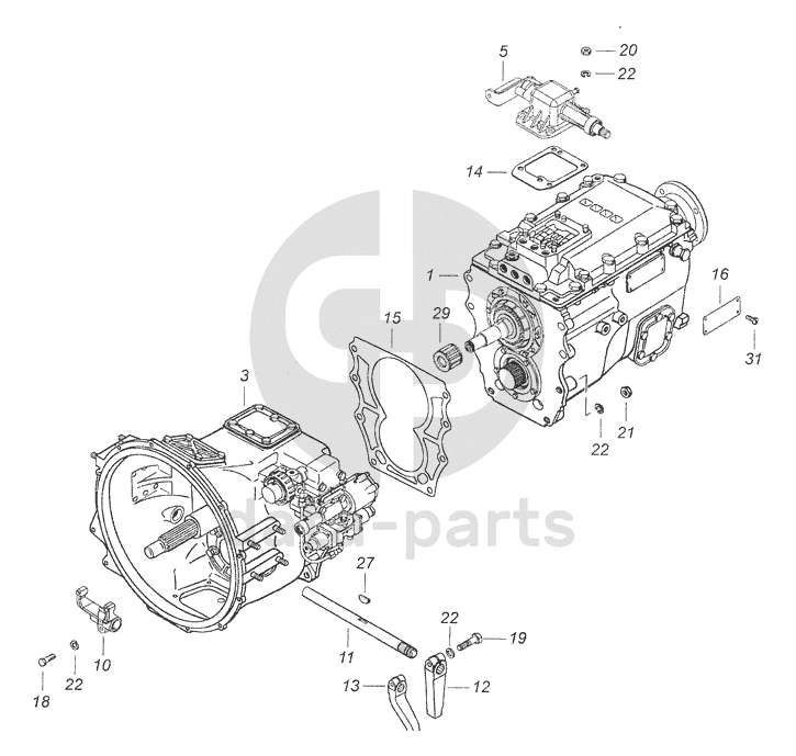 154.1700051-20 Коробка передач с делителем, управлением и деталями сцепления