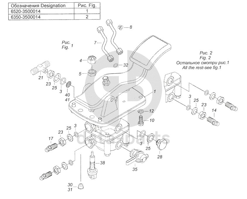 Кран КАМАЗ-ЕВРО тормозной 2-х секционный в сборе с педалью