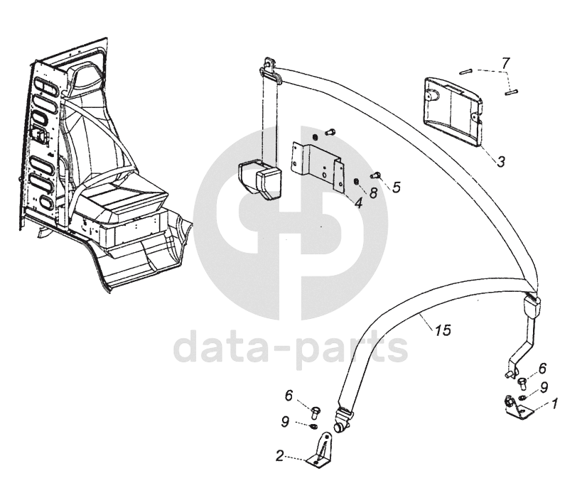 Кронштейн крепления ремней безопасности водителя в сборе
