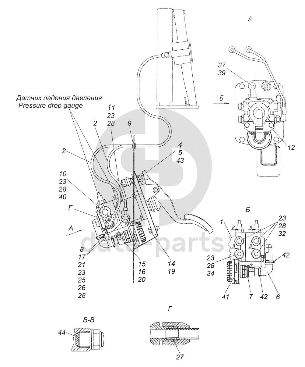 Кран тормозной двухсекционный с педалью