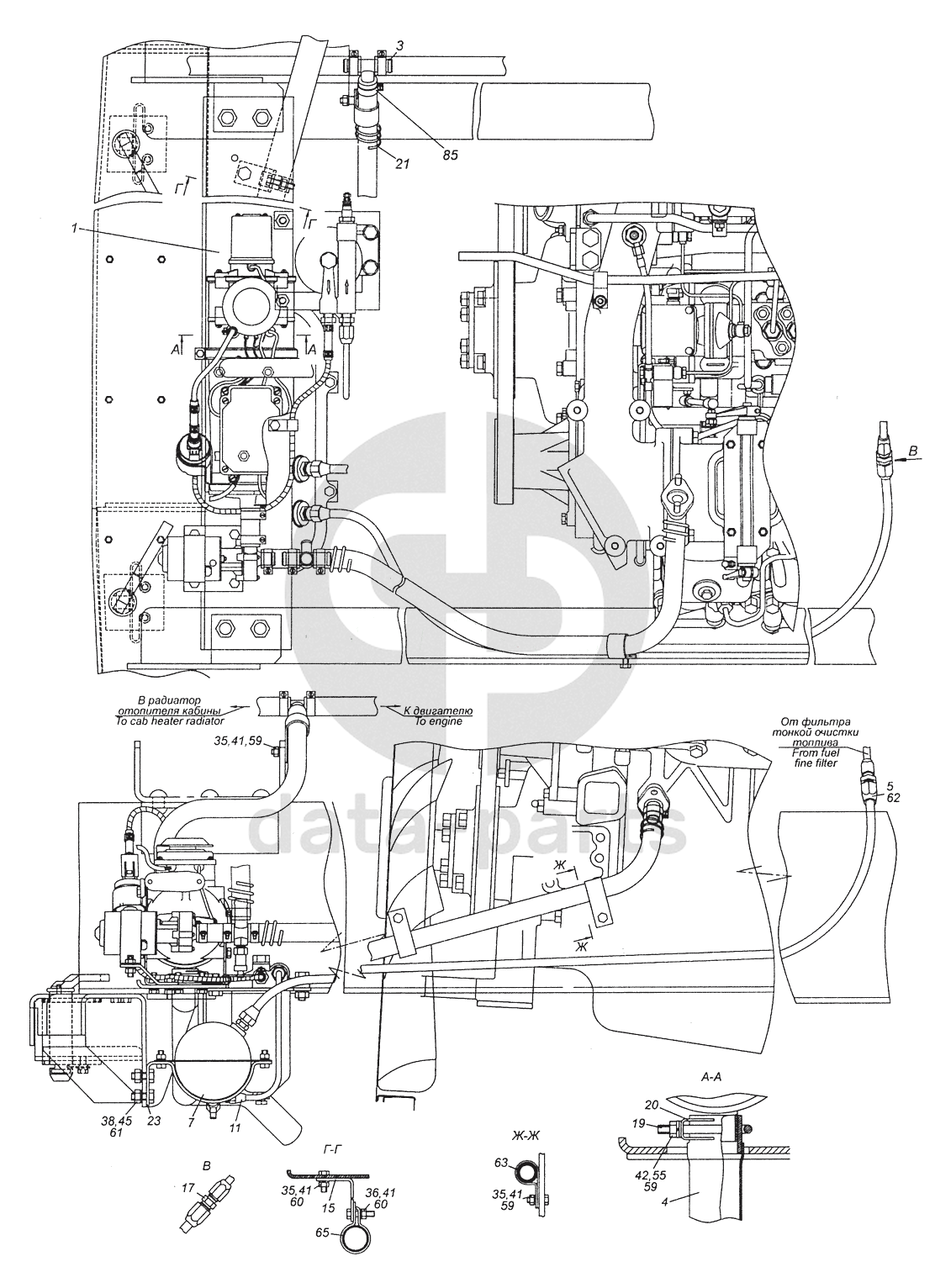 Установка подогревателя, электродвигателя с насосом и топливного фильтра