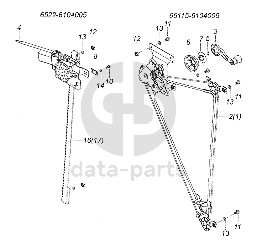 65115-6104005 Установка стеклоподъемников двери