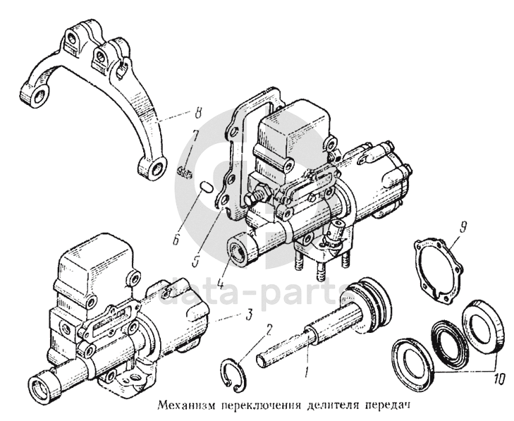 Механизм переключения делителя передач в сборе