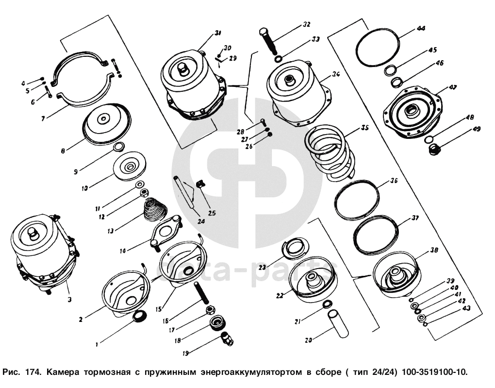 Камера тормозная с пружинным энергоаккумулятором типа 20/20 в сборе