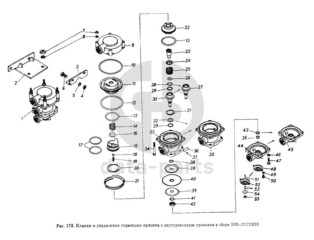 Клапан и управление тормозами прицепа с двухпроводным приводом в сборе