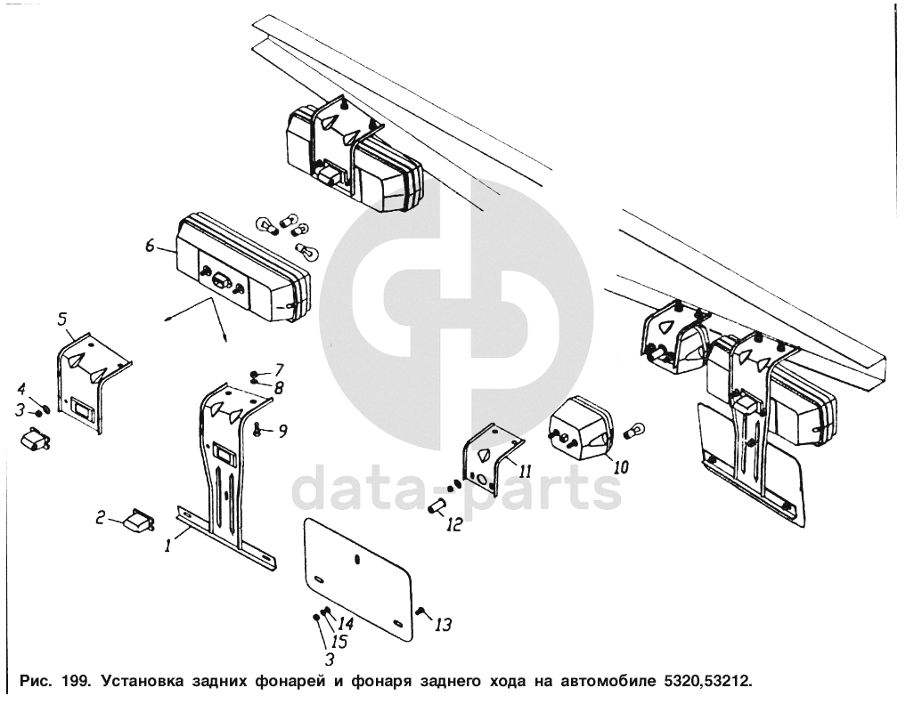Установка задних фонарей и фонаря заднего хода на автомобиле 5320, 53212