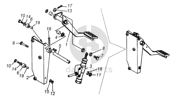 Педаль сцепления с кронштейном и главным цилиндром в сборе