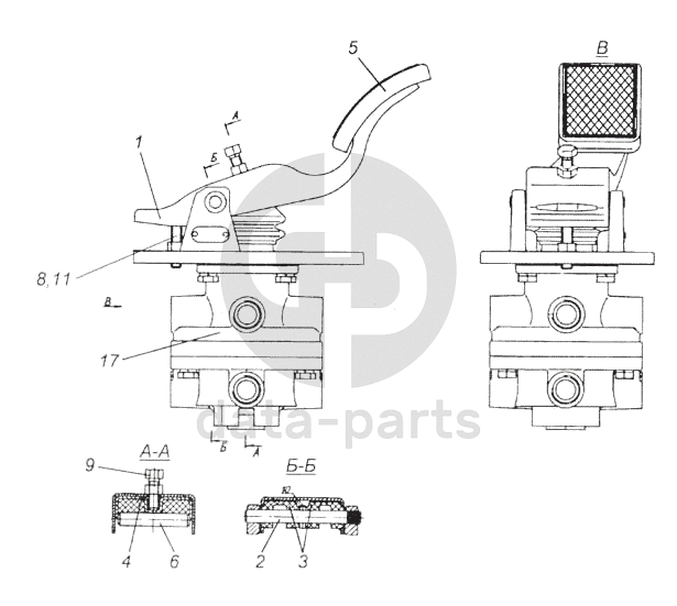 Кран тормозной двухсекционный с педалью