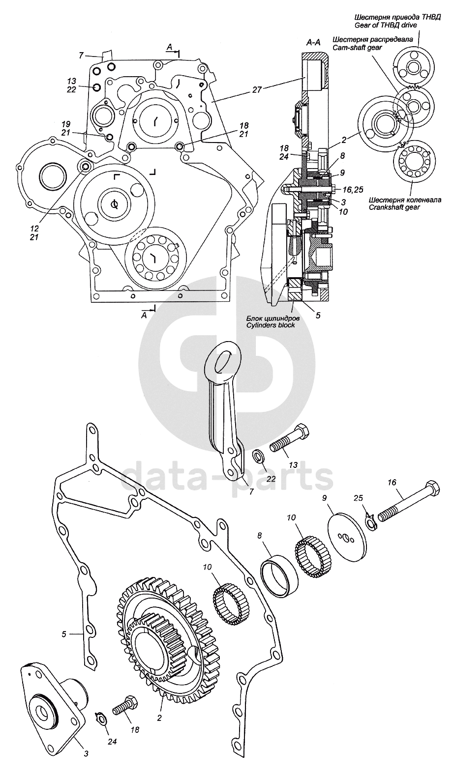 Ось КАМАЗ-ЕВРО шестерни ведущей привода распредвала в сборе