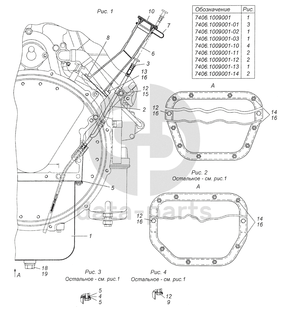 7406.1009001-01 Установка масляного картера, маслоналивного патрубка и указателя уровня