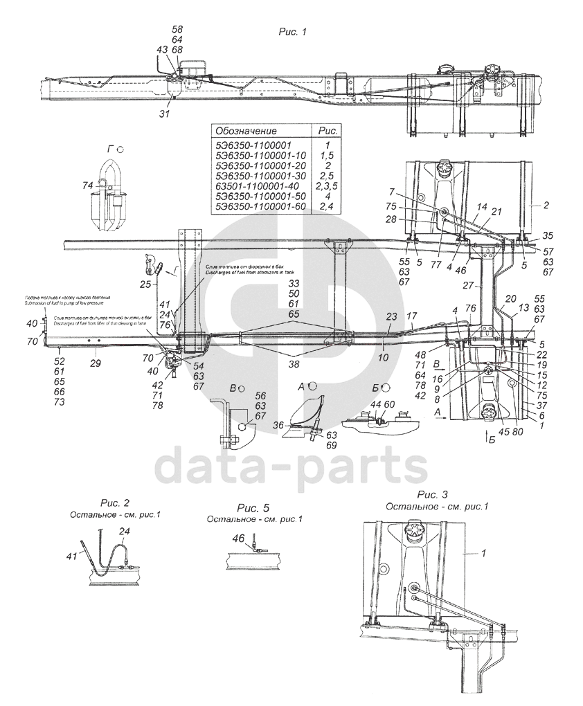 5Э6350-1100001 Установка топливных баков, фильтра грубой очистки топлива (ФГОТ) и топливопроводов