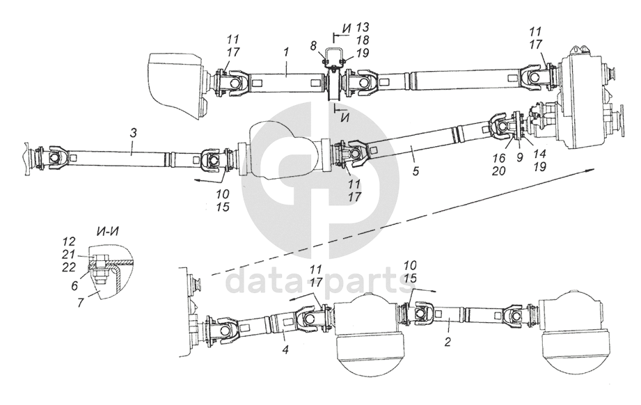 Вал карданный КАМАЗ переднего моста (4 отверстия) L=1143мм