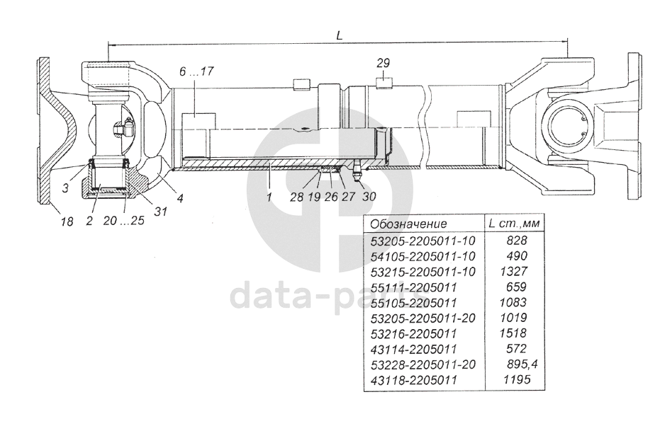 43114-2205011 Вал карданный среднего моста в сборе (сварка)