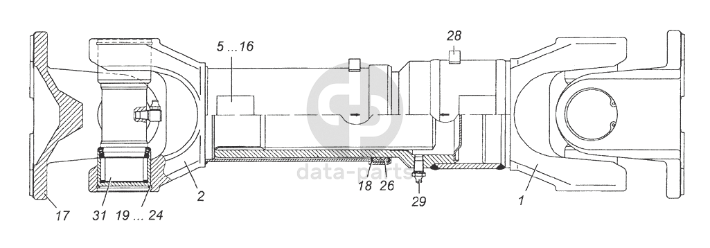 6350-2205011-10 Вал карданный среднего моста в сборе (сварка)