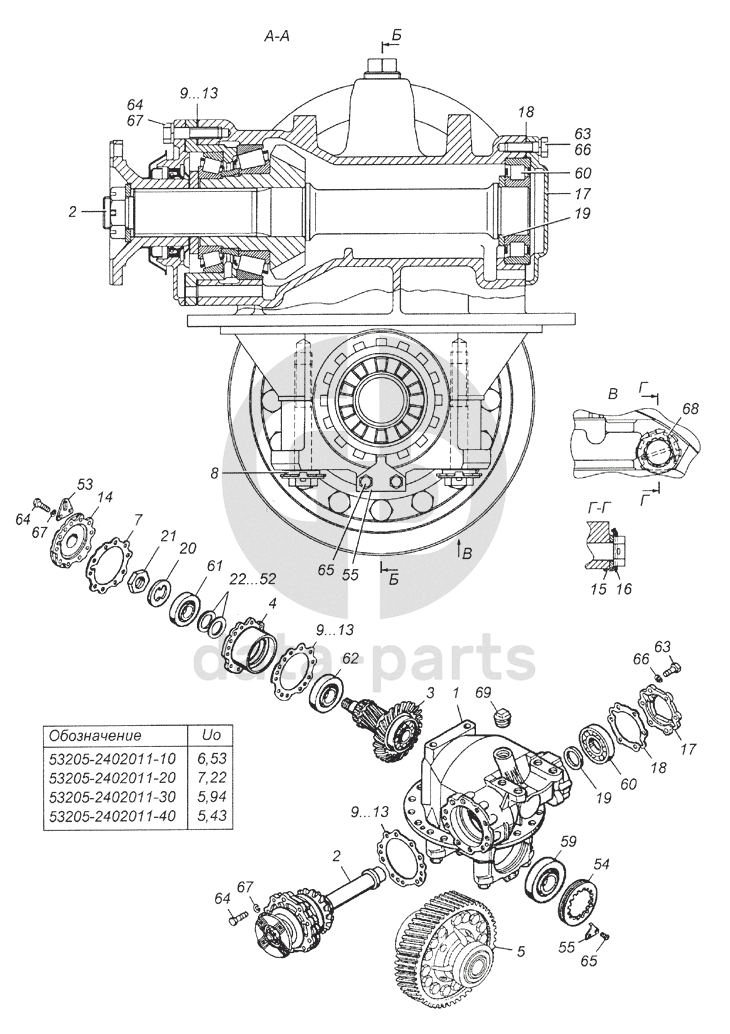 Редуктор заднего моста КАМАЗ-ЕВРО 49/13 (6.53)