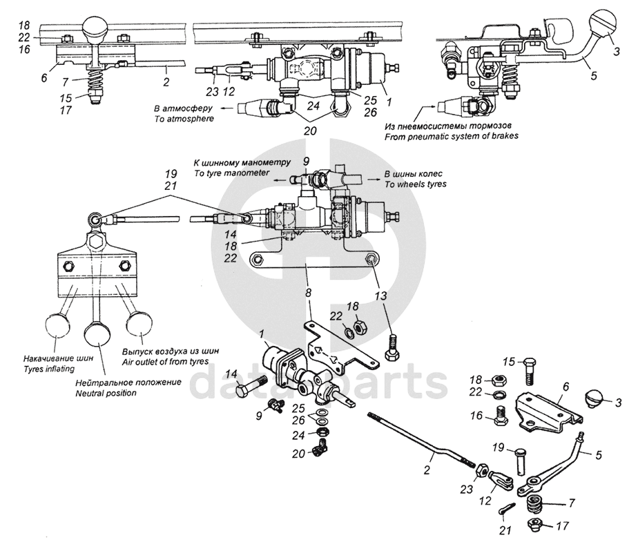 4310-3122001 Установка крана управления давлением системы накачки шин