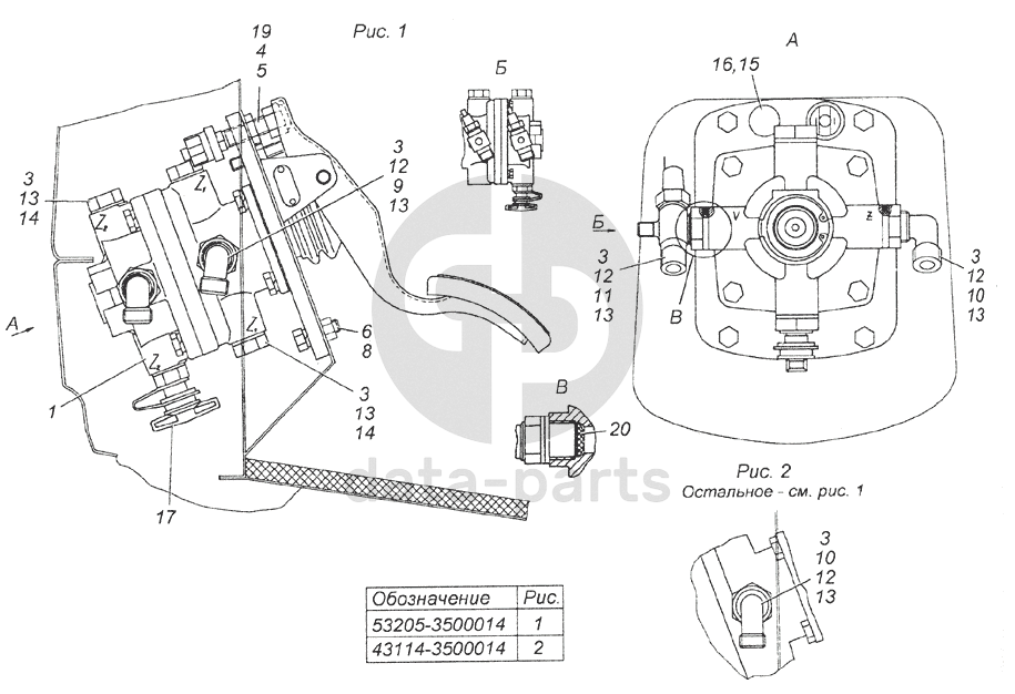 Кран КАМАЗ-ЕВРО тормозной 2-х секционный в сборе с педалью