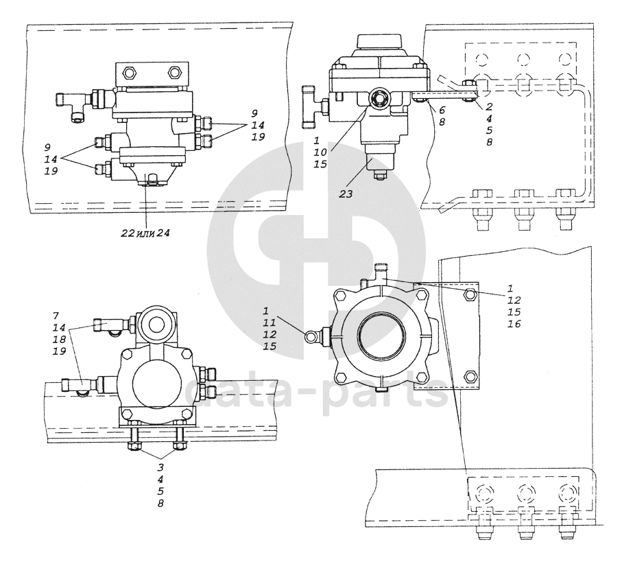 6350-3500022-30 Установка клапанов управления тормозами прицепа