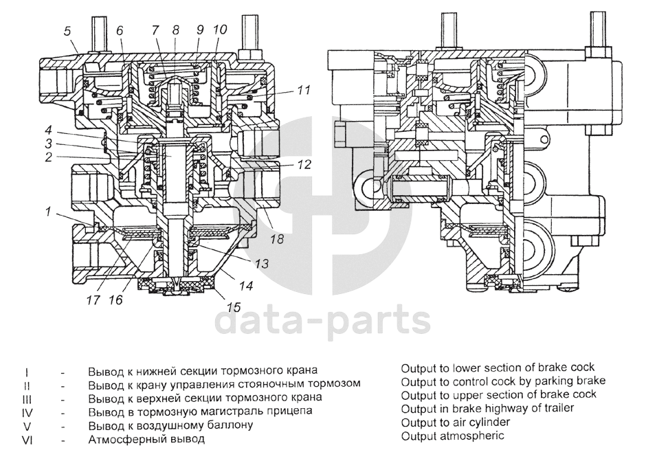 6024-3522010 Клапан управления тормозами прицепа с двухпроводным приводом в сборе