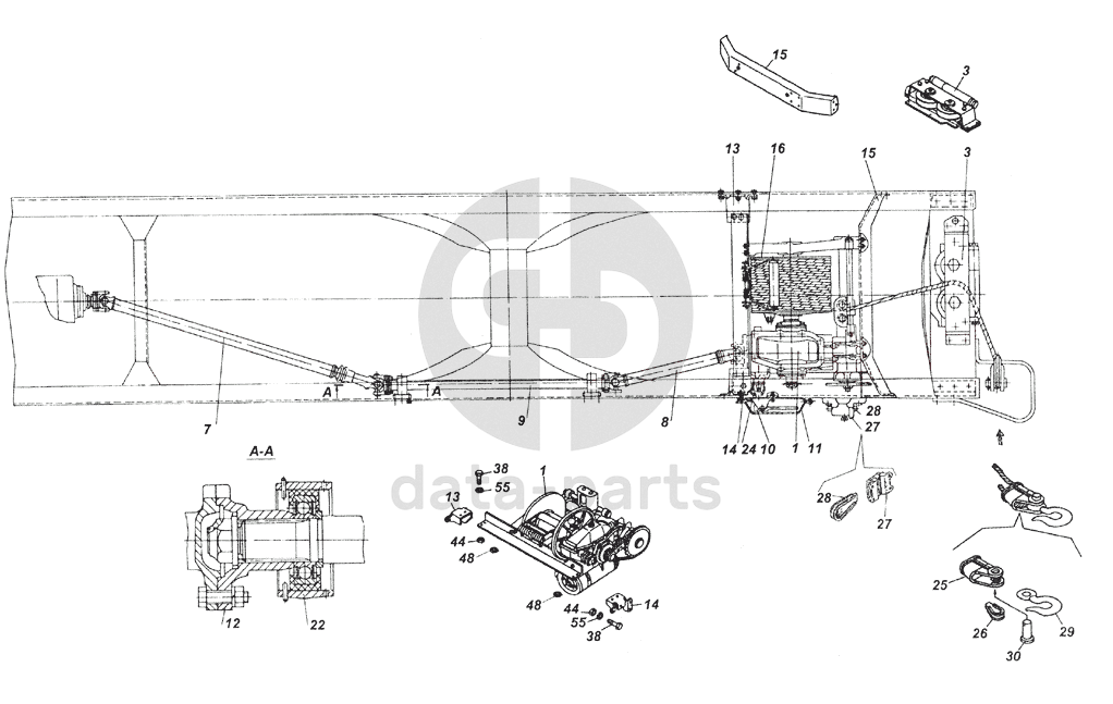 Вал карданный лебедки передний в сборе