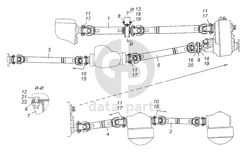 Вал карданный КАМАЗ переднего моста (4 отверстия) L=1143мм