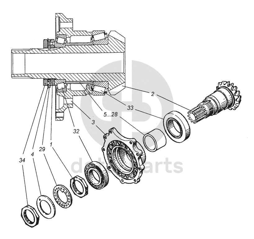 Гайка подшипника ведущей конической шестерни промежуточного моста в сборе
