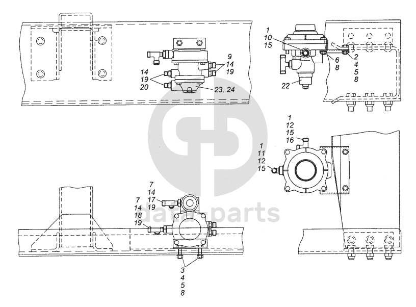 43501-3500022 Установка клапанов управления тормозами прицепа