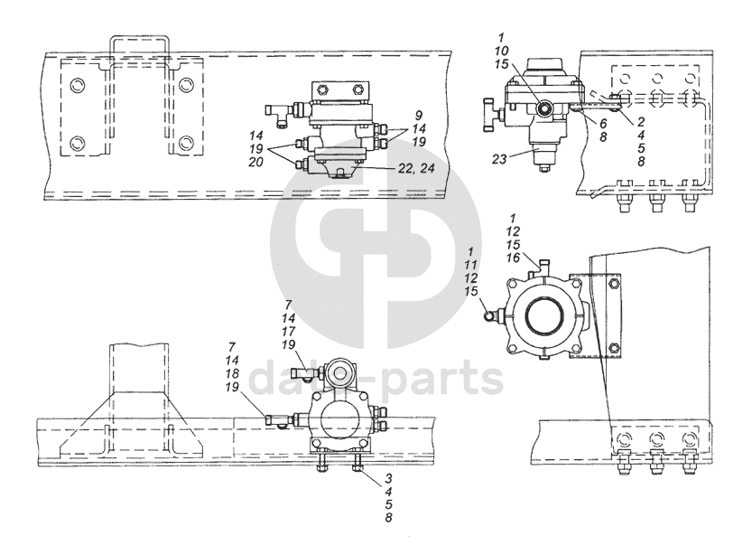 6350-3500022-30 Установка клапанов управления тормозами прицепа