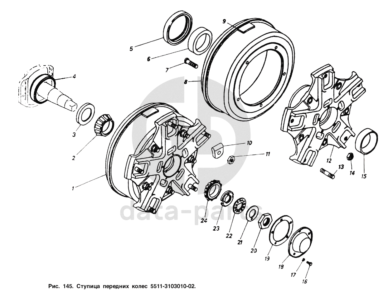 Ступица с тормозным барабаном переднего колеса в сборе