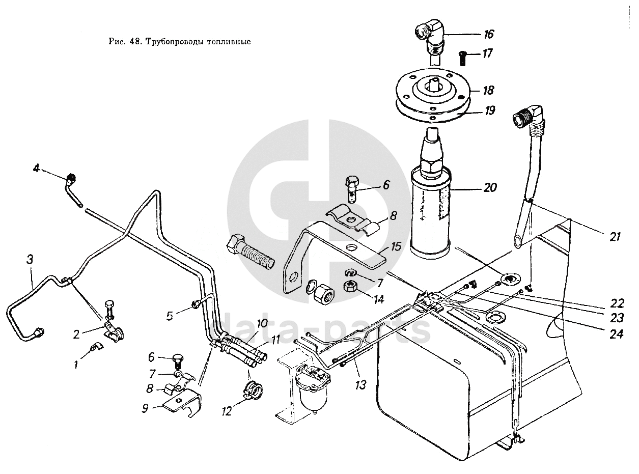 Трубка слива топлива в бак топливный передняя
