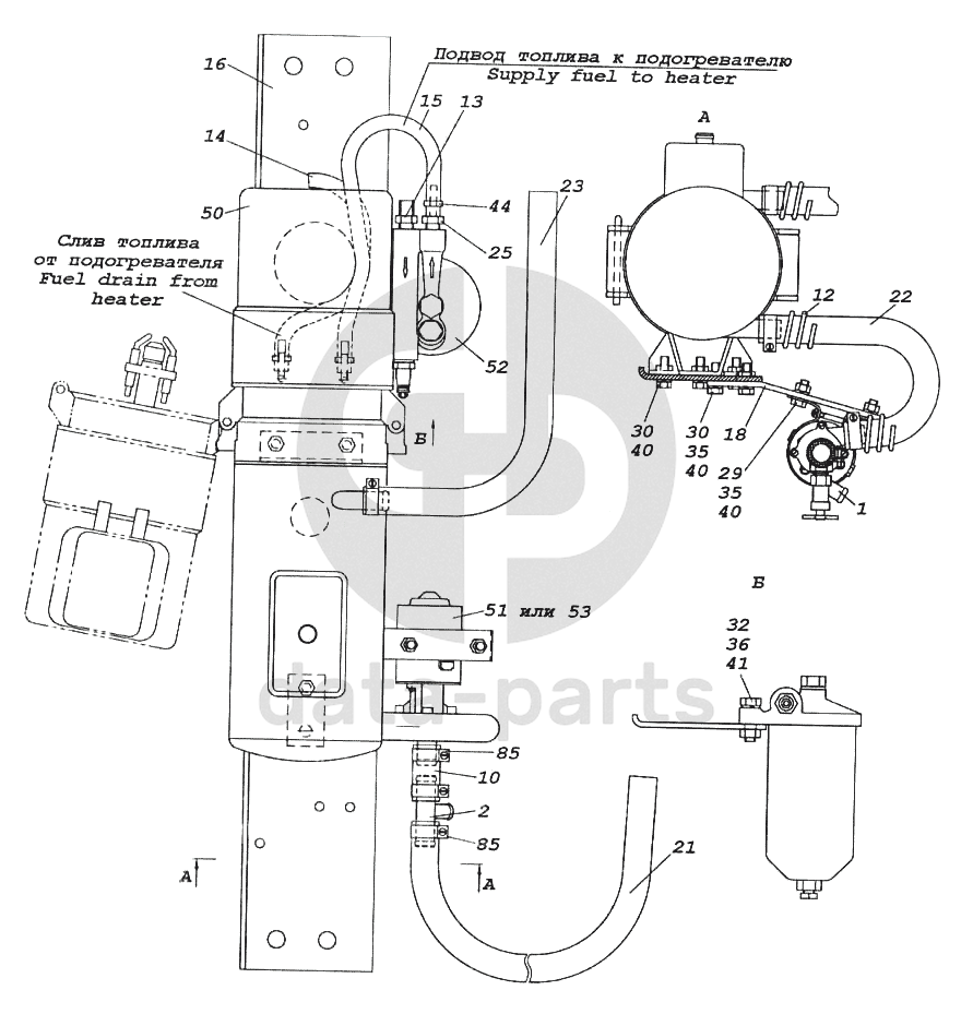 Установка подогревателя, электродвигателя с насосом и топливного фильтра