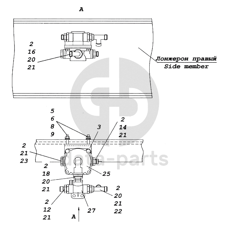 Угольник КАМАЗ М22х18 ГТК Н/О