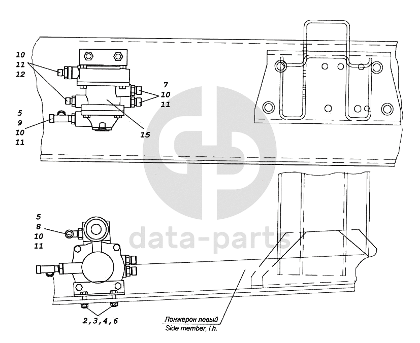 Установка клапана управления тормозами прицепа