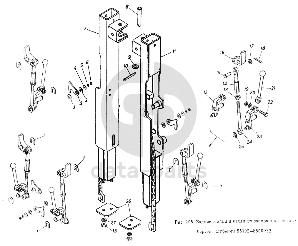 Задние стойки и механизм запирания основных бортов платформы 55102-8500032
