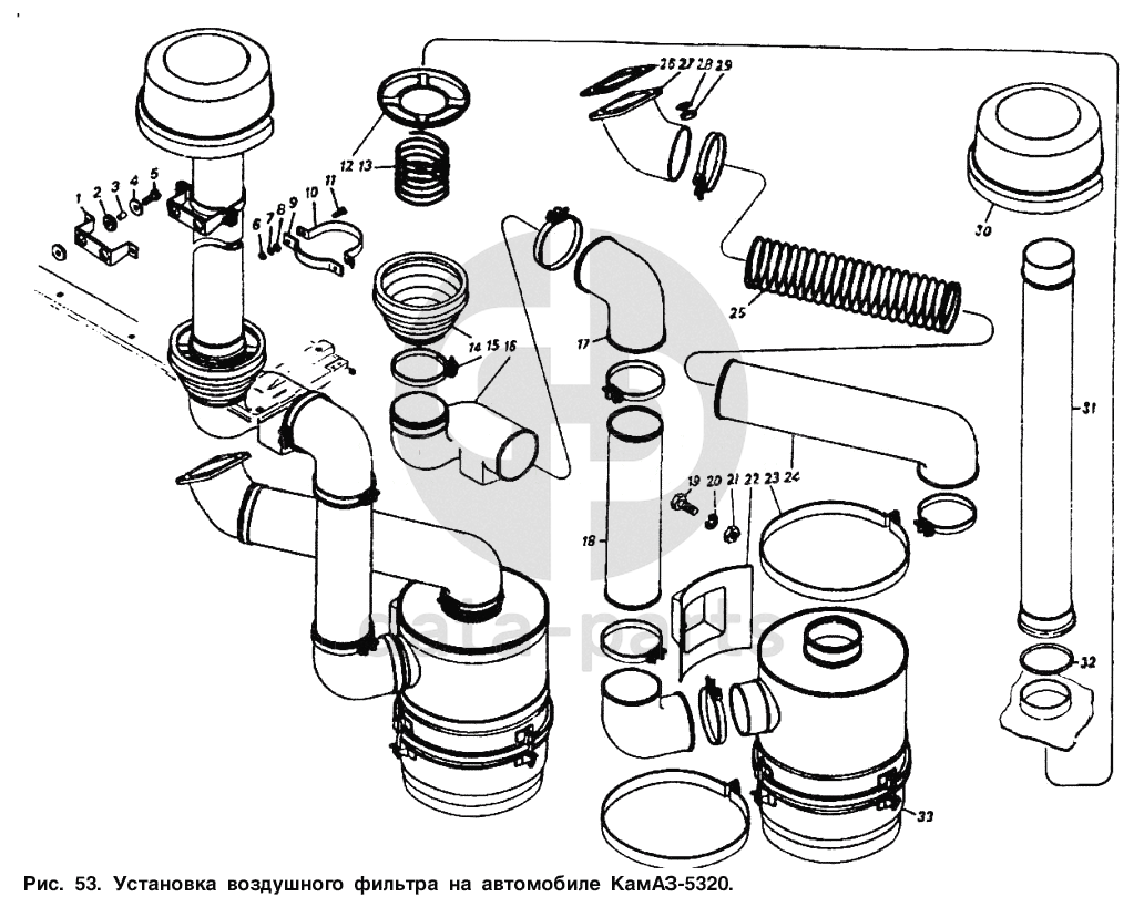 Установка воздушного фильтра на автомобиле КамАЗ-5320