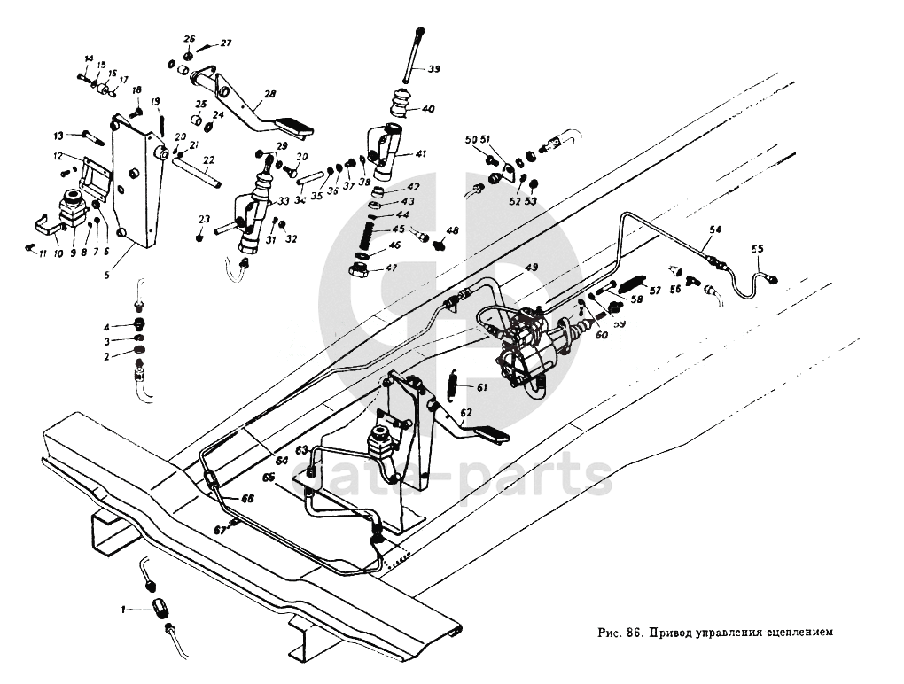 Педаль сцепления с кронштейном и главным цилиндром в сборе